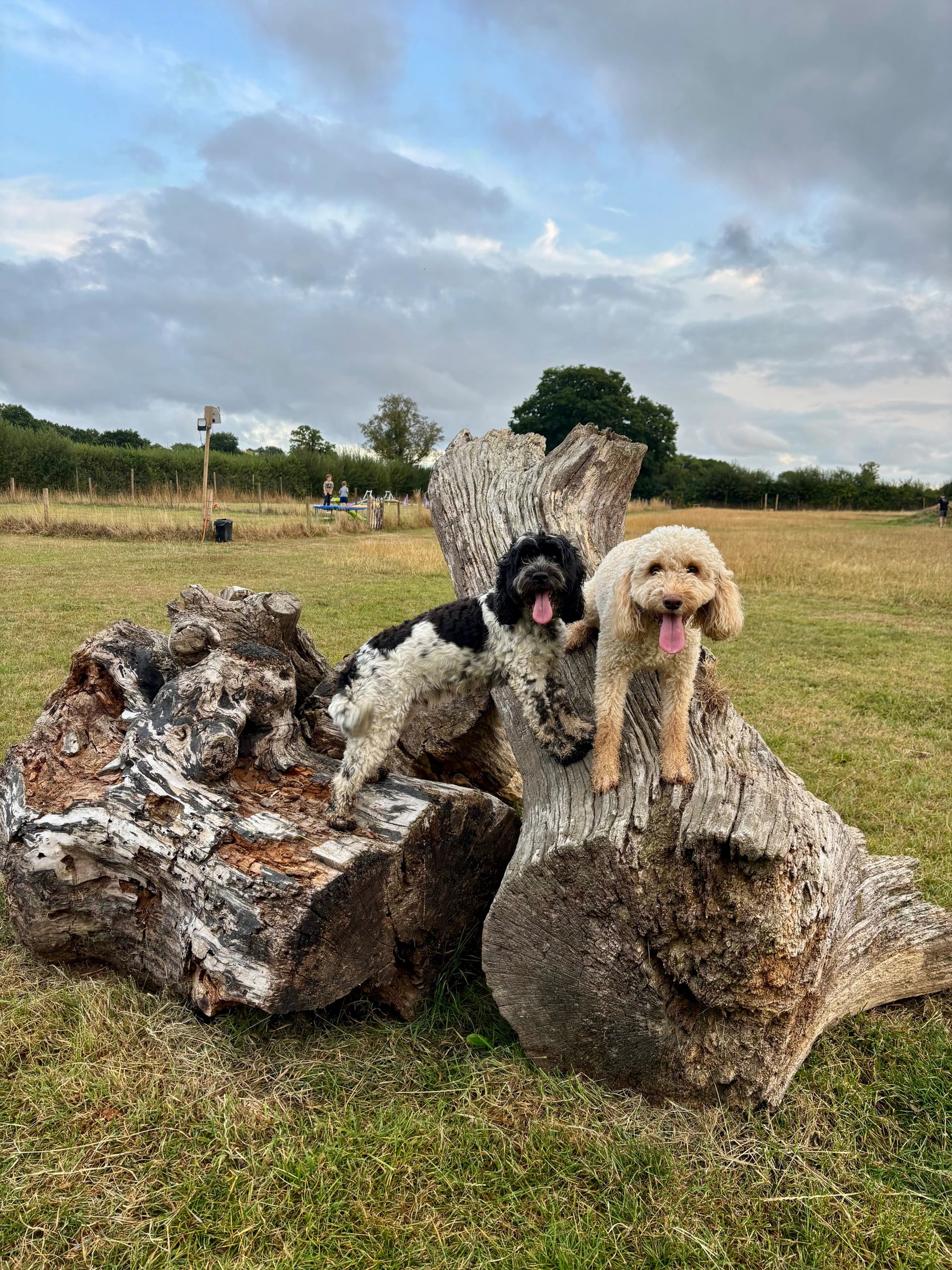 Our family dog park is situated adjacent to our daycare centre, just outside Cullompton. It boasts a large secure dog field with lots of different equipment including platforms tunnels, jumps. We have built a kids play park to keep all the family entertained.